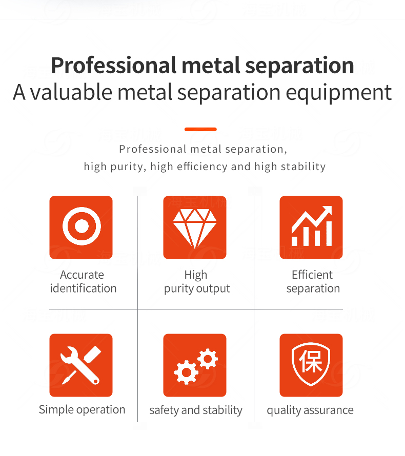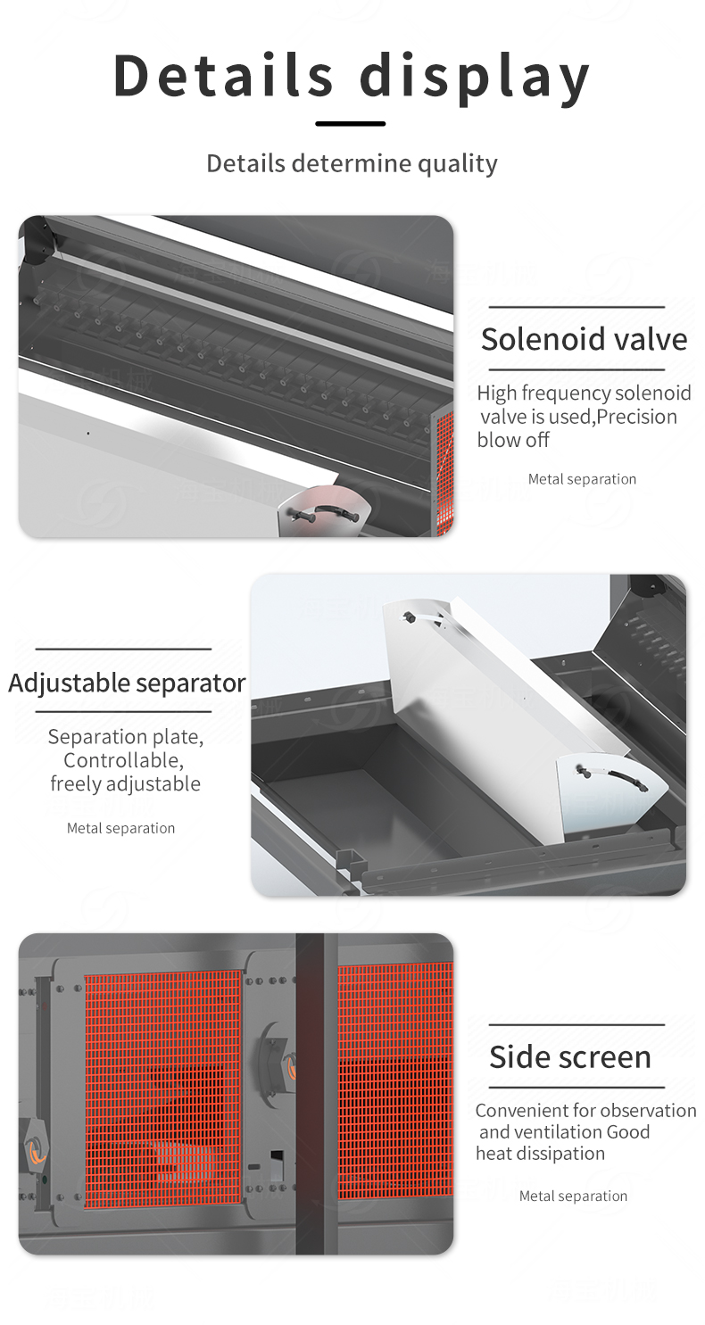 Pemisah logam, baja tahan karat, tembaga, aluminium, seng, pemisahan timah Detail:
